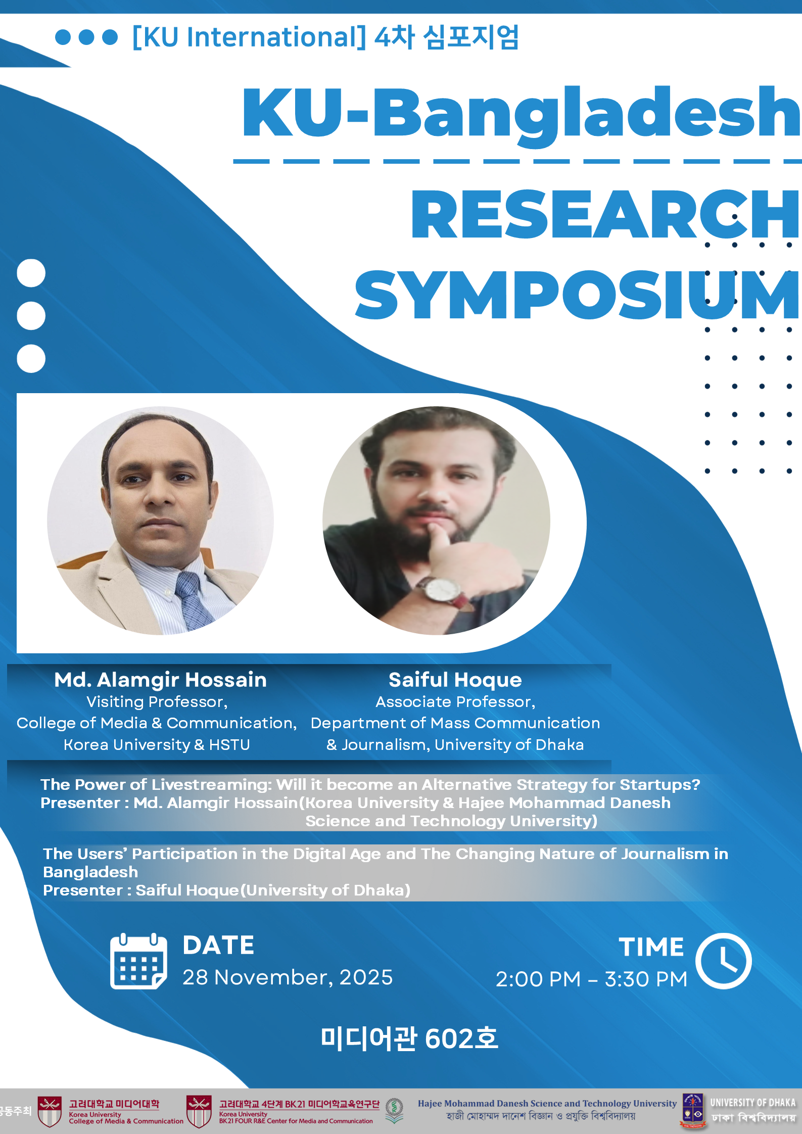 (1) 발표자 Md. Alamgir Hossain Visiting Professor(College of Media & Communication, Korea University & HSTU)