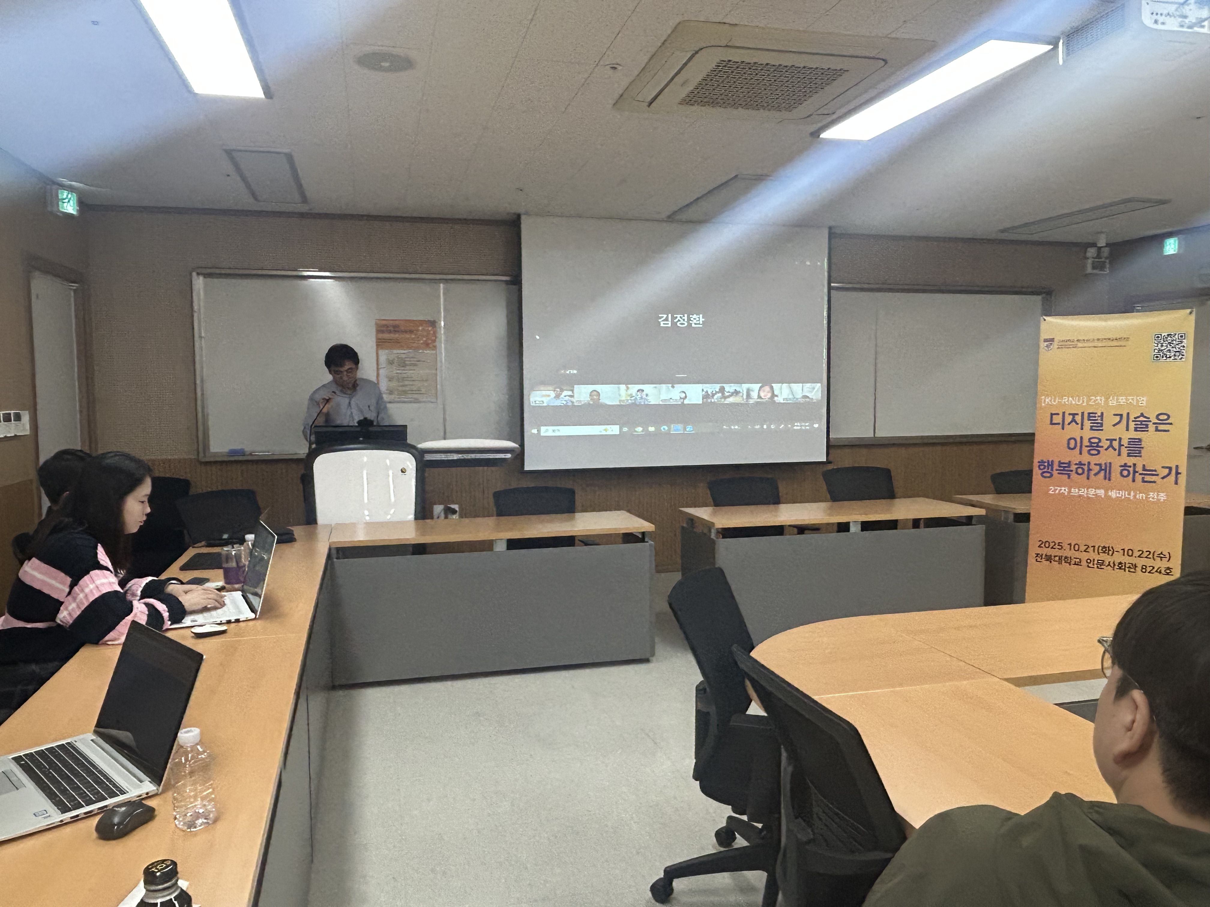 2025년 10월 21일(화)~22일(수) 전북대 인문사회관 824호 및 온라인에서 BK21 미디어학교육연구단이 주관·주최하는 ‘브라운백세미나’가 진행되었다. 본 세미나는 미디어학과 대학원생, BK21 참여대학원생, 연구교수, 참여교수, 전북대 부경대 충남대 강릉원주대 대학원생, 교수가 참여했다.